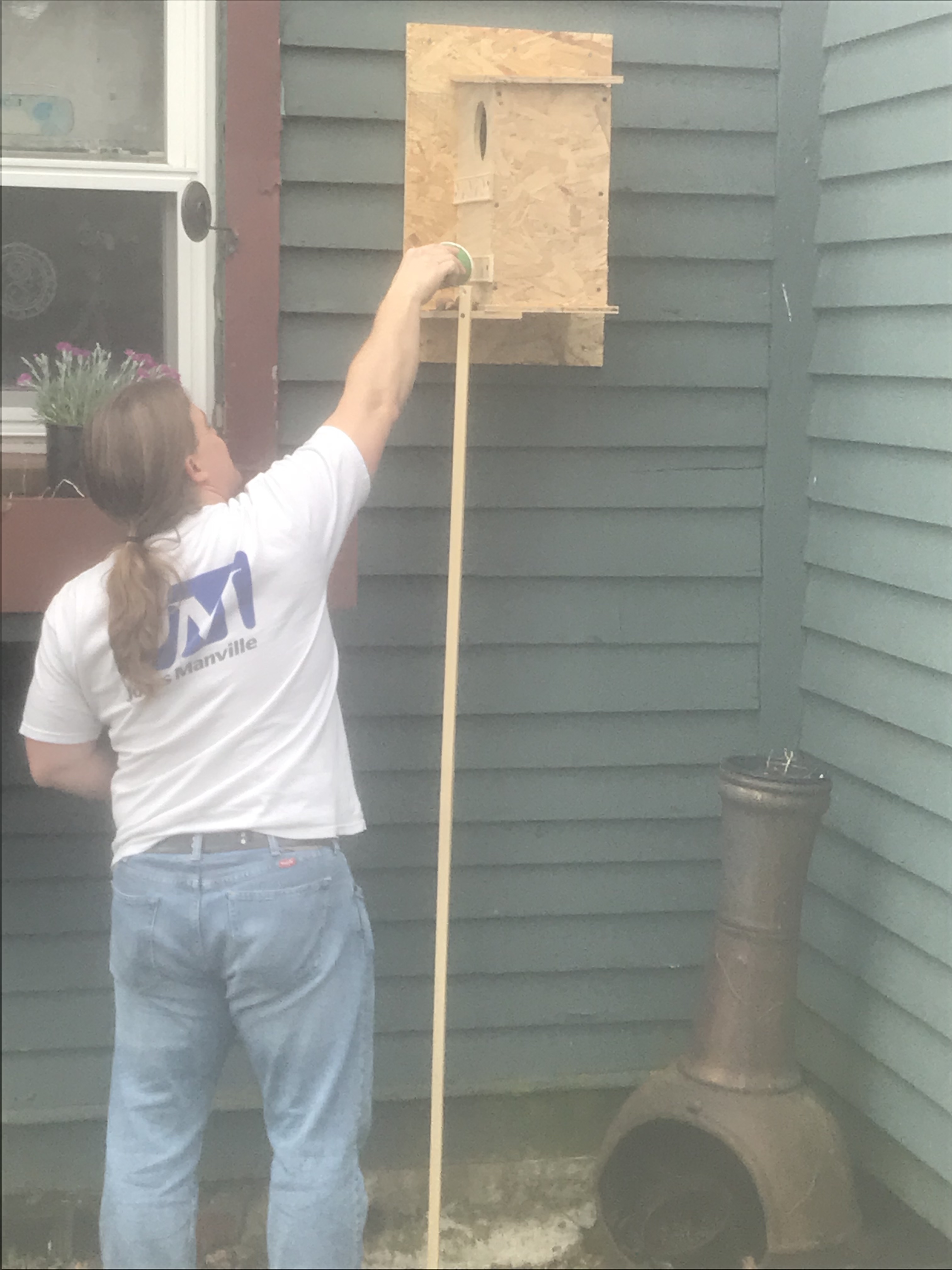 For the last few years we’ve had birds nesting under the eave of our mudroom roof. Two years ago, they built a nest inside the eave. Last summer we swore we would get them out and fix the eave and close up the hole so they’d have to find another place to live come springtime.