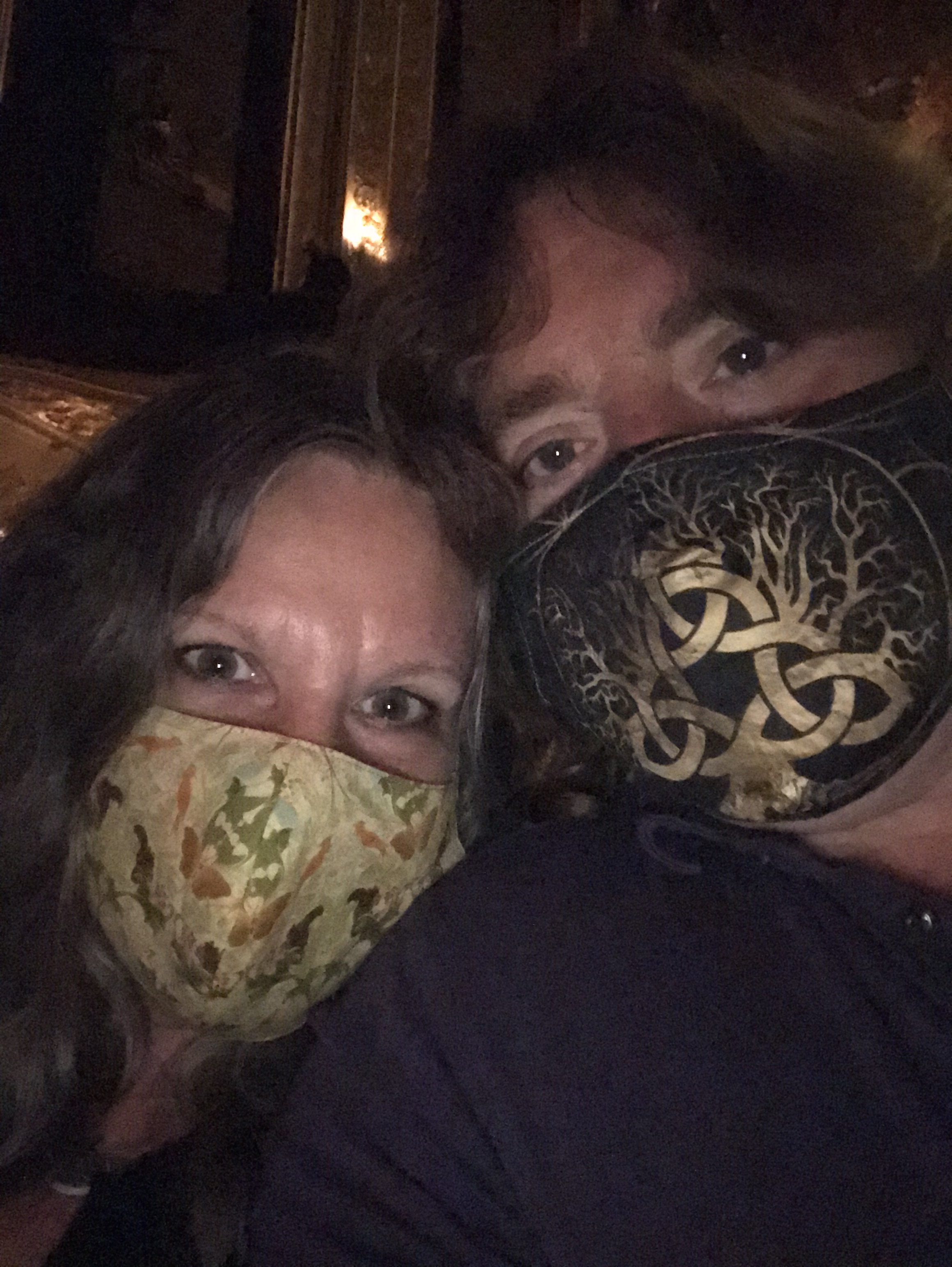 When I learned they were going to be in Utica, it was perfect timing! I’ve been working on my 3rd Earth and Skies book, LOST IN YOUR RHYTHM, and Jack is a former THUMP! Performer (which is my made up world’s version of STOMP!). So to see them perform on stage, while we sat three rows away from all the action, was just amazing. We couldn’t take photos during the performance, but here is the stage before the show started and here are me and David fully masked and practicing social distancing as safely as possible!