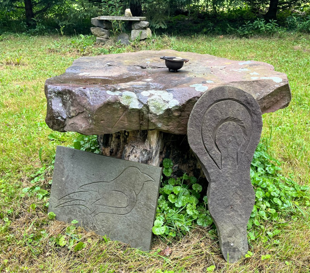 This morning I went out to our sacred space to leave an offering of Scottish oat cakes and whisky and was greeted by a family of five rather large grass spiders chilling out on our altar.