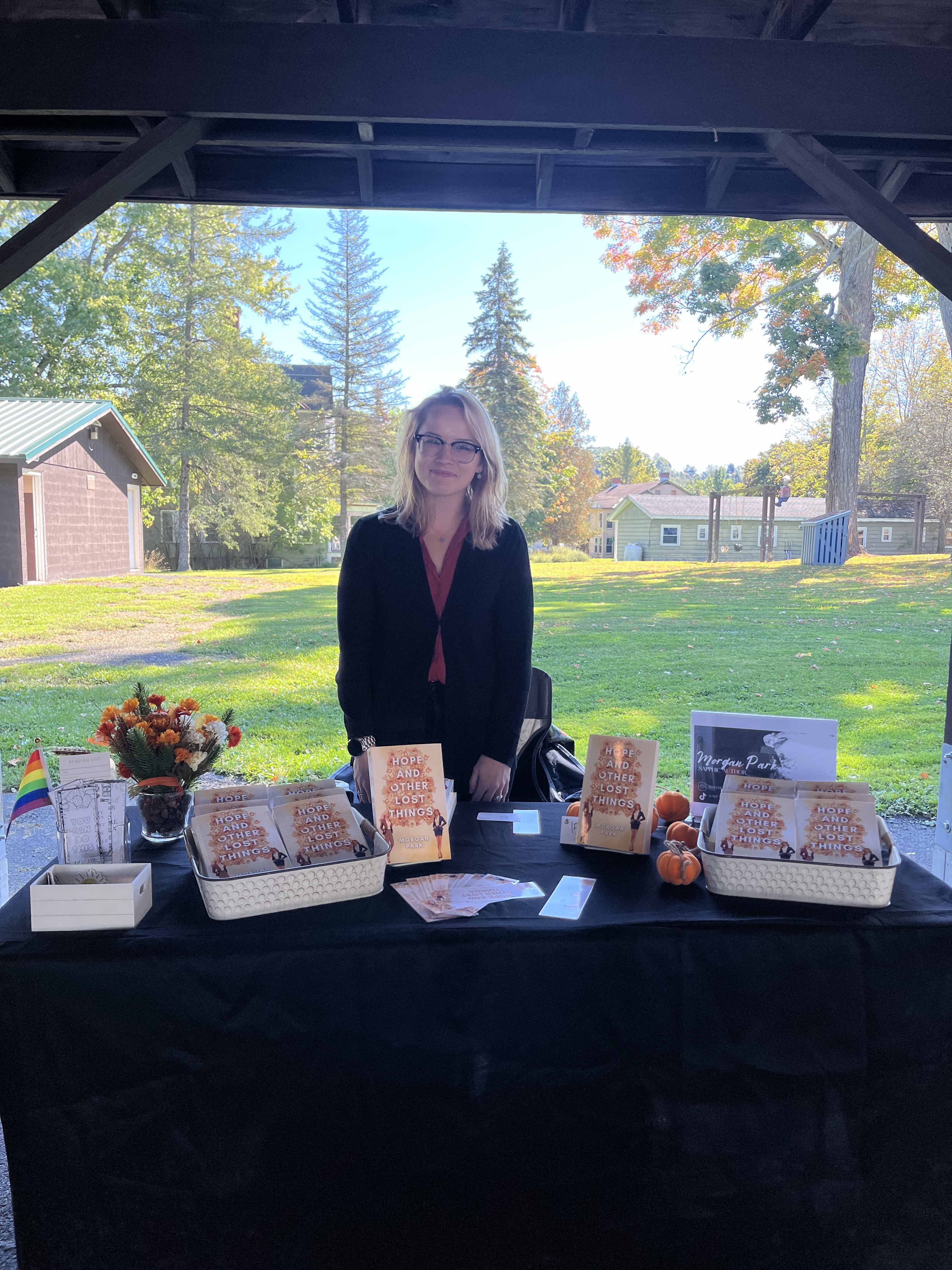 This time I was not in Richfield Springs covering a story or laying out the paper. Rather, I was there as a romance author, sharing space with other local authors at the invitation of the Richfield Springs Library. The event took place in the picturesque Spring Park, located on the corner in the heart of the village.