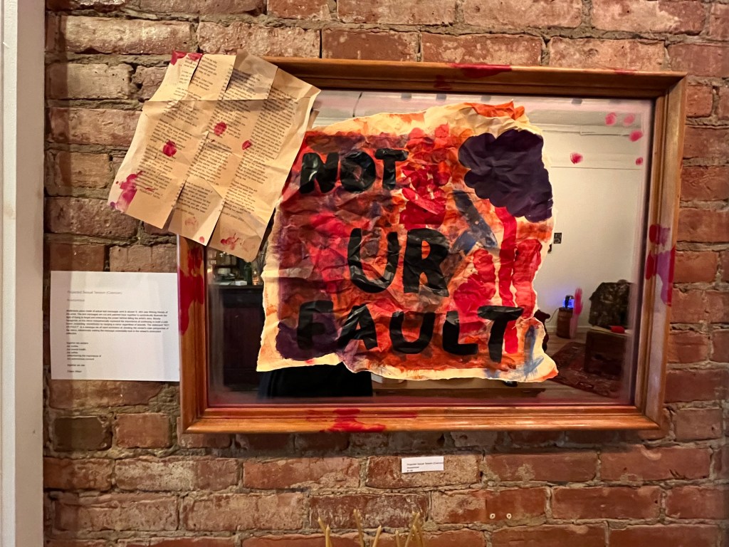 The event was called Solidarity, and it was put together by Kat Schafer and Alexandra Tamburro, owner of Main Street Mercantile, in Little Falls. The shop was cleared to make room for an art exhibit presenting stories from survivors of all ages and walks of life. Their stories are heart wrenching, empowering, and real.